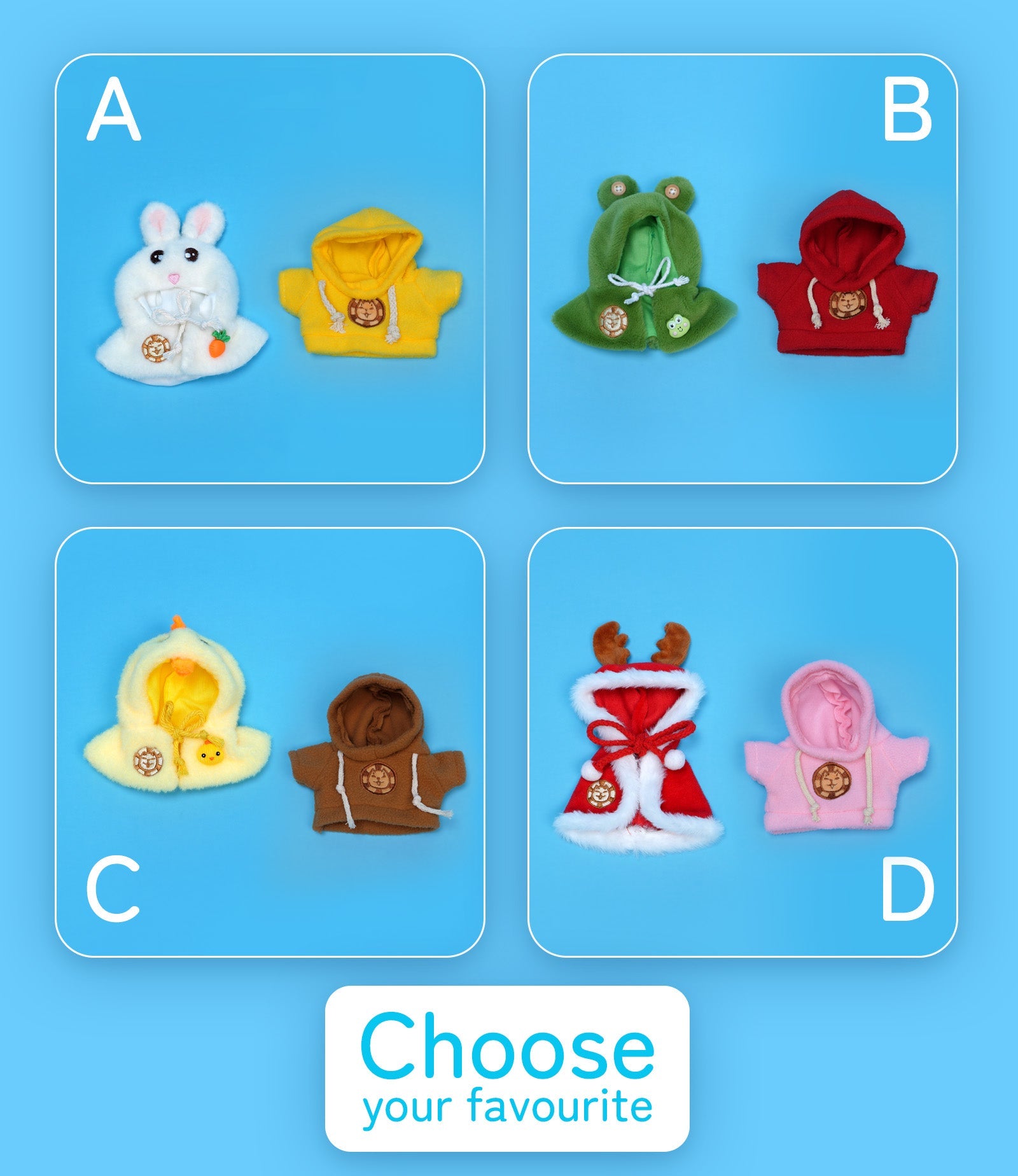 The Cape & Hoodie Outfit Set is compatible with all Eilik series, allowing you to style any Eilik with these fun and fashionable accessories.